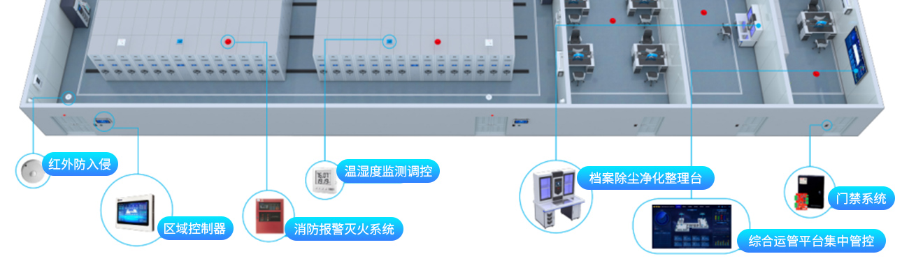 智能檔案庫房通過一體化檔案管控平臺對智能密集架、安防、環(huán)控、RFID設(shè)備和系統(tǒng)進行集中化管理以及智能監(jiān)測和管控,從而實現(xiàn)檔案庫房的智能化管理和高效安全的使用,以落實國家在檔案治理體系、資源體系、安全體系和利用體系等方面的要求。