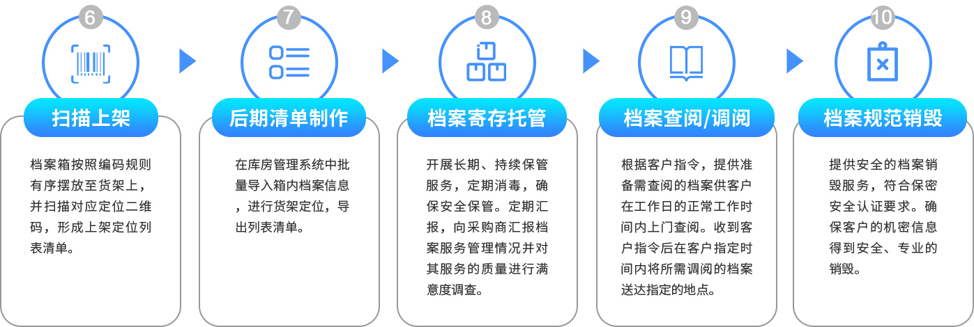 檔案寄存托管服務(wù)內(nèi)容:登記核對(duì)、打包裝箱、上封條、檔案裝車運(yùn)送、進(jìn)庫(kù)的檢查、掃描上架、后期清單制作、檔案寄存托管、檔案查閱/調(diào)閱、檔案規(guī)范銷毀。