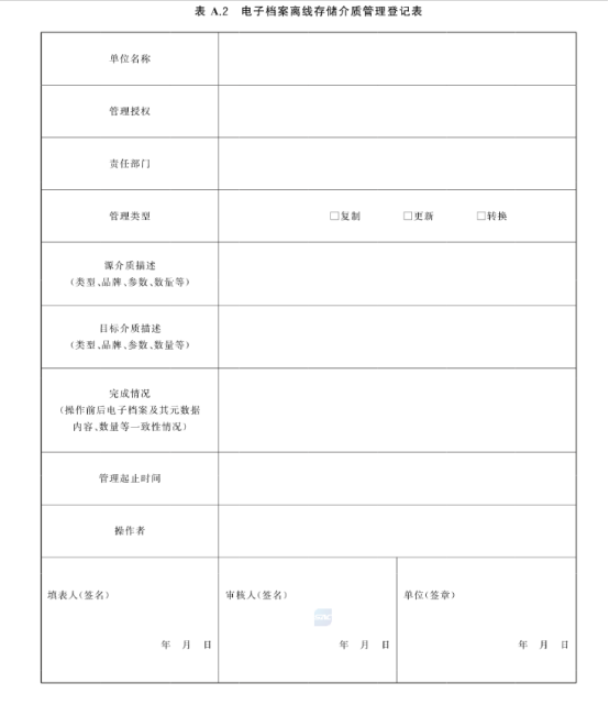 10.3.7應(yīng)填寫電子檔案銷毀登記表(見表 A.4)并歸檔保存。