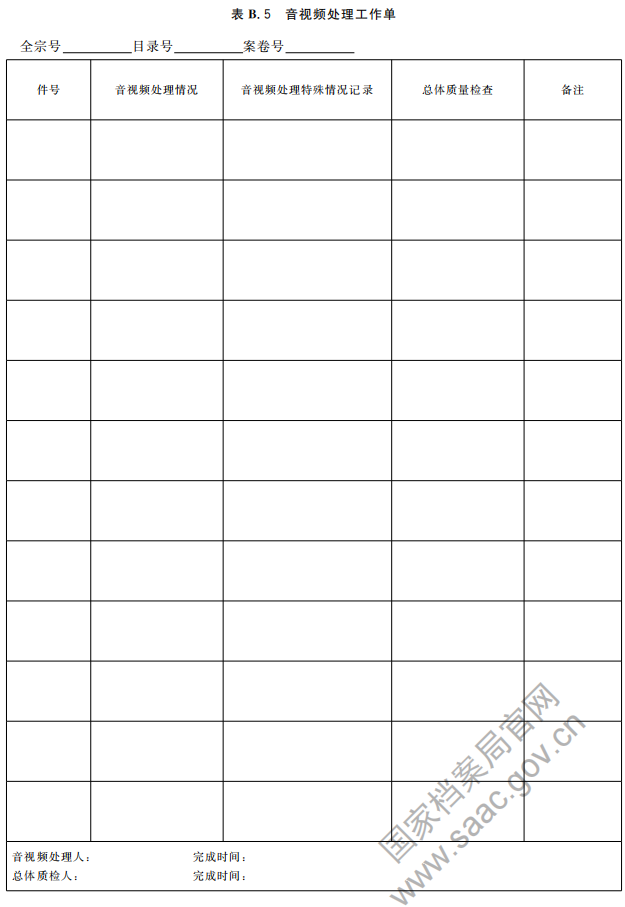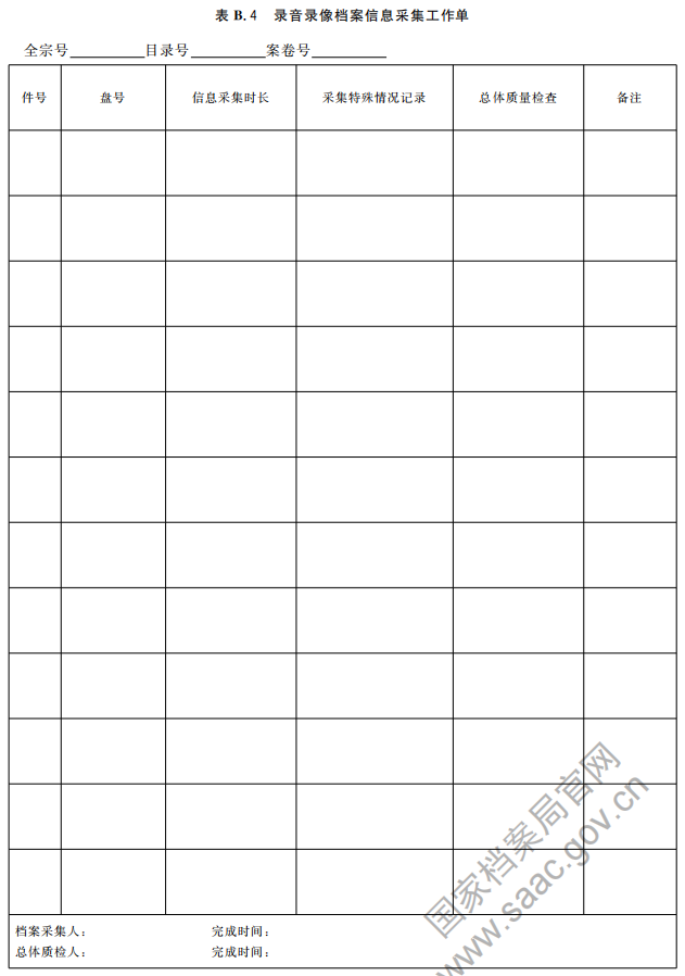 錄音錄像檔案數(shù)字化管理登記表示例見(jiàn)表B.1~B.8。