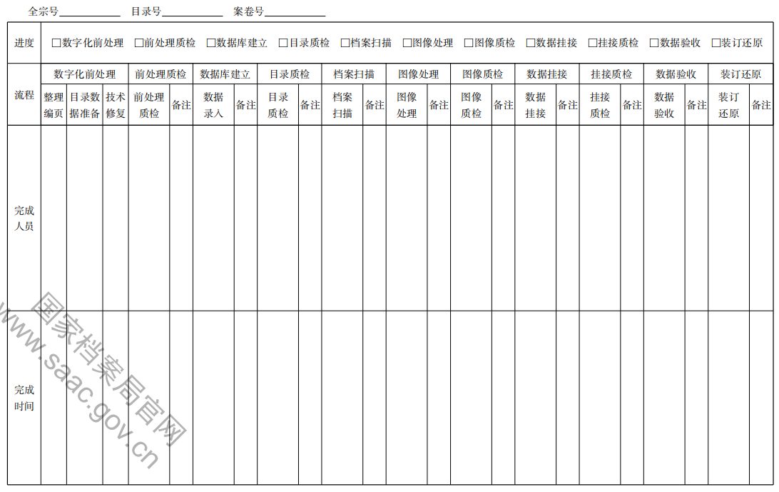 表B.2 紙質(zhì)檔案數(shù)字化流程單