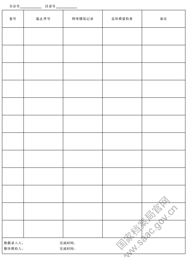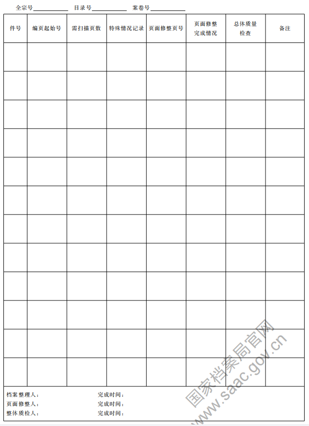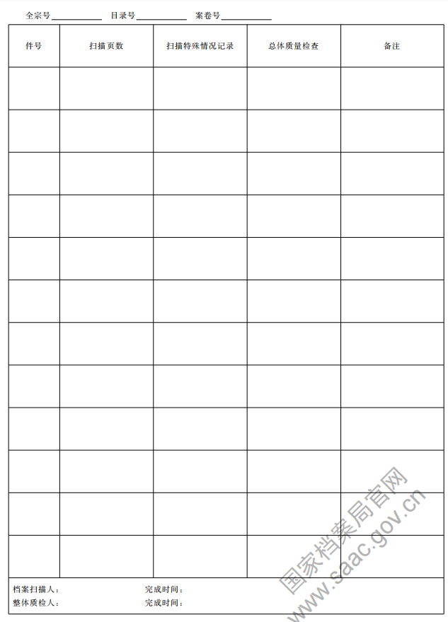 紙質(zhì)檔案數(shù)字化管理登記表示例見(jiàn)表B.1~表B.8。