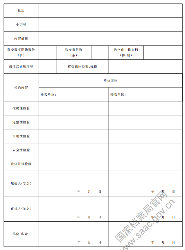 驗(yàn)收合格的數(shù)據(jù)應(yīng)按照紙質(zhì)檔案數(shù)字化工作方案及時(shí)移交,并履行交接手續(xù)。移交單示例參見(jiàn)附錄B的表B.8。