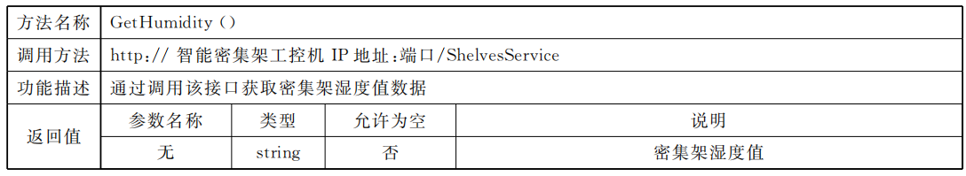 表 B.9 獲取密集架濕度