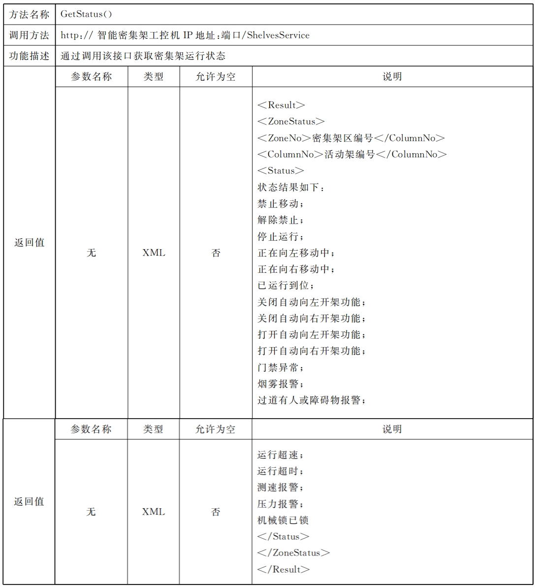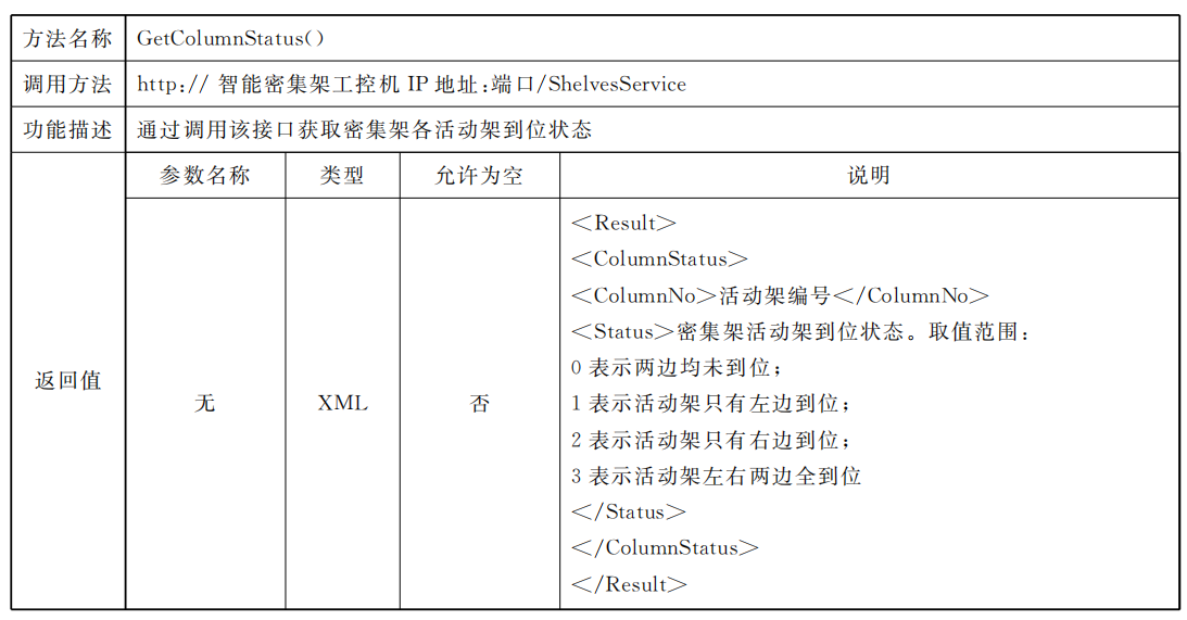 表 B.11 獲取密集架運行狀態(tài)