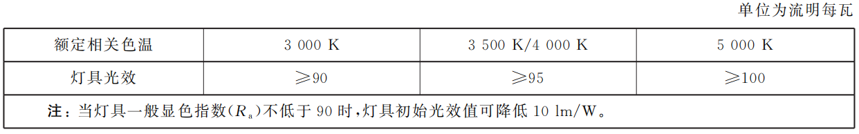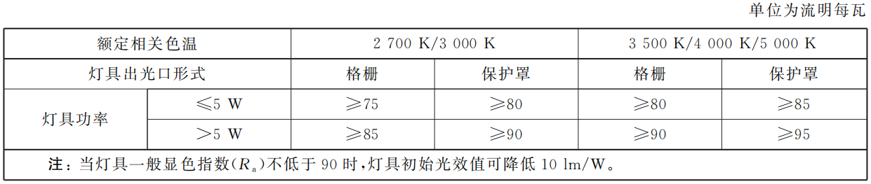 4.3.6 LED筒燈燈具的初始光效值應(yīng)符合表3規(guī)定。