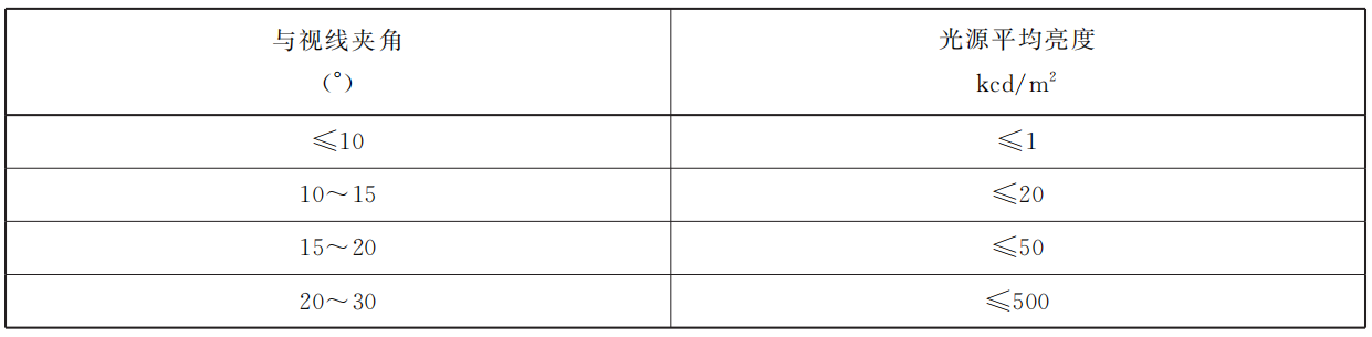 5.4.1 直接型燈具的遮光角不應(yīng)小于表8的規(guī)定。