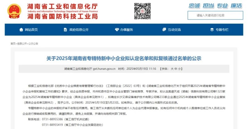 2025年5月19日,湖南省工業(yè)和信息化廳官網(wǎng)正式公布了“關(guān)于2025年湖南省專精特新中小企業(yè)擬認(rèn)定名單和擬復(fù)核通過名單的公示”,我司憑借在檔案數(shù)字化領(lǐng)域的卓越表現(xiàn),成功通過認(rèn)定!這也是繼國家級高新技術(shù)企業(yè)之后,獲得的又一重要榮譽。