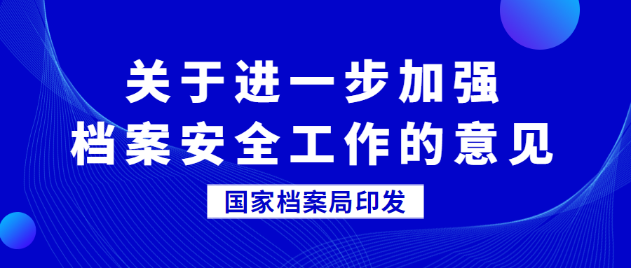 國家檔案局印發(fā)《關(guān)于進一步加強檔案安全工作的意見》的通知