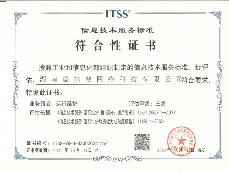 ITSS信息技術服務標準符合性證書