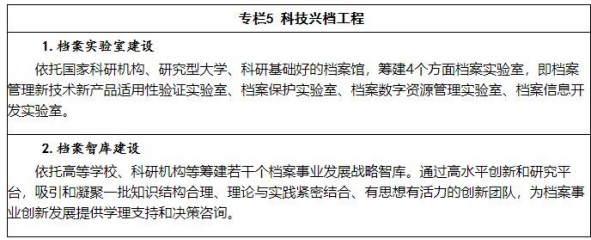 21.加大重點(diǎn)科研任務(wù)攻關(guān)力度。堅(jiān)持創(chuàng)新和實(shí)用科研方向,進(jìn)一步整合和強(qiáng)化科技力量,加快建設(shè)重點(diǎn)檔案實(shí)驗(yàn)室,集中力量打好制約檔案事業(yè)發(fā)展的理論創(chuàng)新和技術(shù)攻堅(jiān)戰(zhàn)。著力開(kāi)展新時(shí)代檔案治理相關(guān)理論及政策研究。重點(diǎn)開(kāi)展新一代信息技術(shù)在檔案管理中的應(yīng)用、大數(shù)據(jù)環(huán)境中電子文件與電子檔案一體化管理、電子檔案長(zhǎng)期安全保存、檔案信息資源共享利用、自主可控環(huán)境下檔案數(shù)字資源管理、檔案數(shù)據(jù)治理、超低能耗檔案館建設(shè)、傳統(tǒng)載體檔案保護(hù)和修復(fù)等重大課題研究。加大在電子檔案憑證價(jià)值保障、結(jié)構(gòu)化數(shù)據(jù)歸檔、檔案內(nèi)容信息深度開(kāi)發(fā)、紙質(zhì)檔案去酸技術(shù)及其效果評(píng)估等技術(shù)方面的攻關(guān)力度,力爭(zhēng)實(shí)現(xiàn)突破。