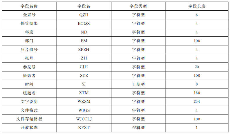 數(shù)碼照片檔案目錄數(shù)據(jù)庫結(jié)構(gòu)及字段表